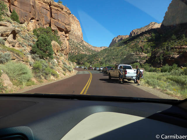 Um 15:10 h kommen wir kurz vorm Park an und stehen wie viele weitere im Stau. Echt voll hier. Das hab ich nie geglaubt. Aber es ist wahr. Autoschlangen, wohin man schaut.