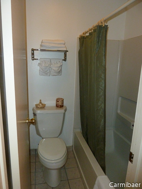 Das Motel besteht aus verschiedenen Gebäudeteilen. Es gibt ein einstöckiges Gebäude, ein zweistöckiges Gebäude mit aussenliegenden Korridoren und Blick auf den Lake Dillon und zwei Gebäude mit innenliegenden Korridoren. Wir haben ein Zimmer mit Blick auf den See gehabt, wie man an den Bildern sehen kann. Das Zimmer ist sauber und ist grosszügig. Eingerichtet ist es mit einem Tisch und zwei Stühlen, Kühlschrank und Kaffeemaschine, wie einem Föhn. Das Waschbecken befindet sich in einem Vorraum zum Bad. Das Bad ist relativ klein, wie halt fast überall.