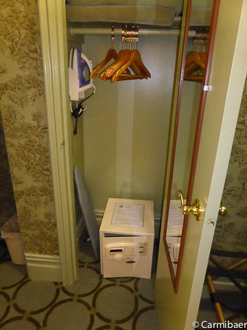 Das Zimmer ist mit Fernseher, Telefon, Radiowecker, Bügeleisen und -brett, Safe ausgestattet. Gegen Gebühr gibt es Internet und Pay-TV. Ausserdem gibt es morgens in der Lobby Kaffee, Tee und verschiedene Sorten Muffins.