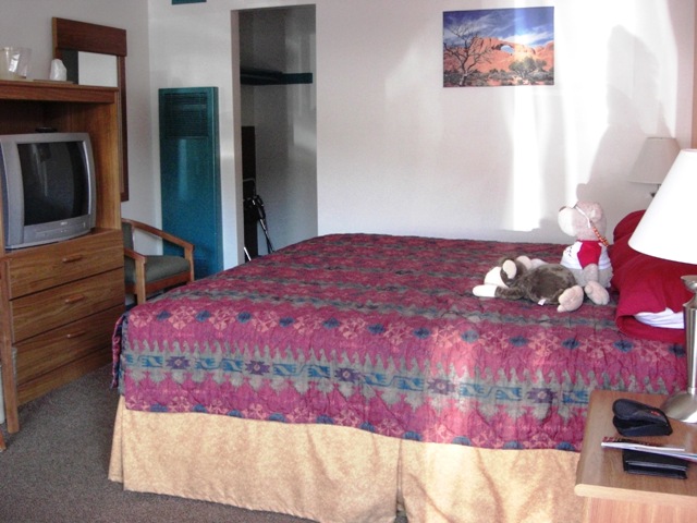 Das Motel verfügt über ca. 20 ebenerdige Zimmer. Die Zimmer sind großzügig und leider etwas dunkel. Aber ansonsten ist es ein schönes Motel, was man als Alternative zum Best Western nehmen kann. Wir waren die zwei Nächte zufrieden. Parkplätze gibt es genügend vor den Zimmern auf der einen Seite. Die Aussicht auf die Umgebung ist einfach schön. Egal zu welcher Seite man sein Zimmer hat. Das hauseigene Restaurant kann man empfehlen, auch wenn es ein zwei Dollar teurer ist. Aber in Torrey gibt es nicht allzuviele Alternativen.