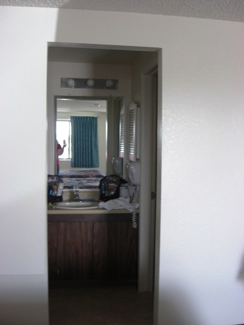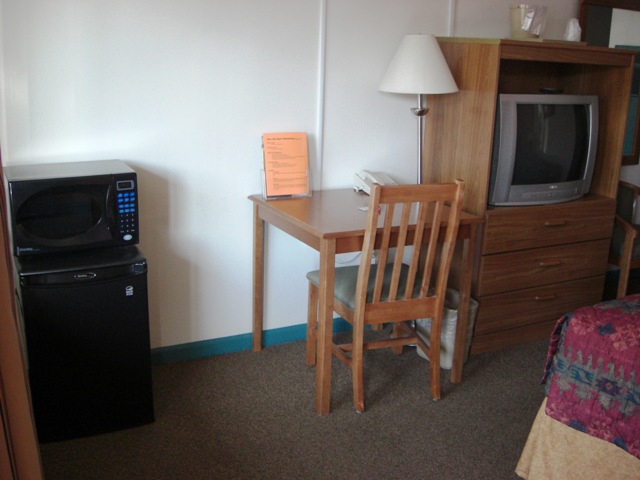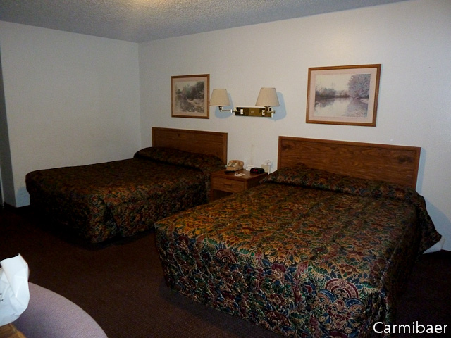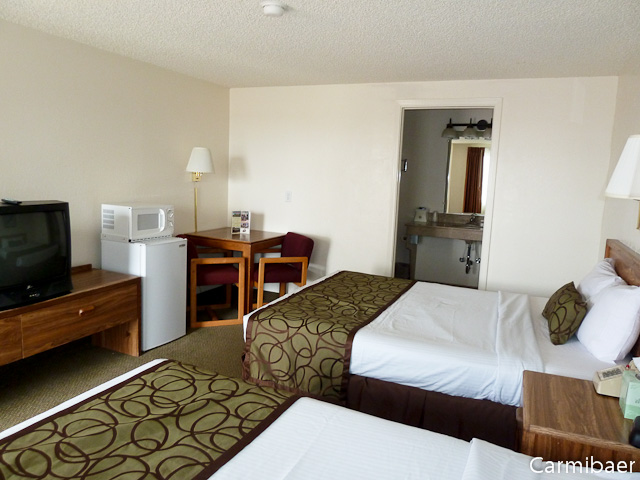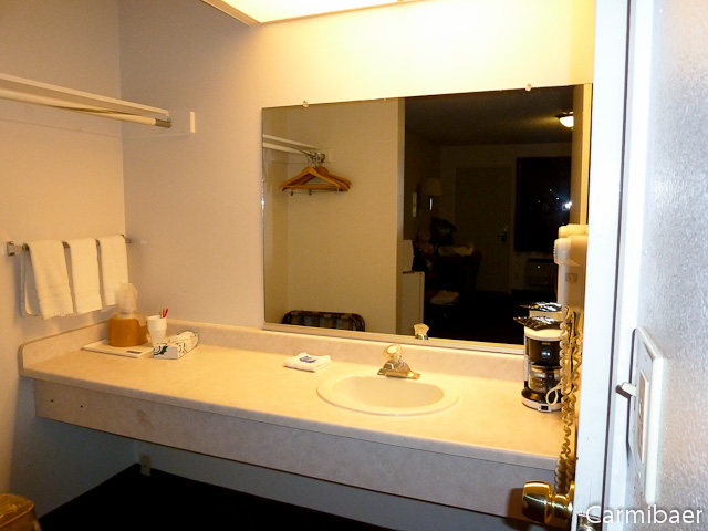 Das Motel ist früher mal ein Best Western gewesen. Es ist schon etwas älter, aber ich finde es völlig ausreichend. Es gibt einen Kühlschrank, Kaffeemaschine und eine Mikrowelle im Zimmer. Das Waschbecken ist wieder im Zimmer integriert. Frühstück gibt es nicht.