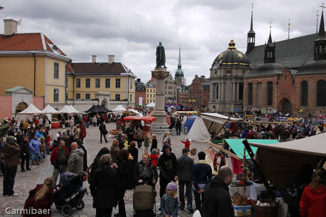 Auf dem Weg zurück kamen wir noch am Riddarholmskyrkan vorbei, wo auf dem Platz davor ein Mittelaltermarkt war. Es war ein buntes Treiben, trotz dem stürmischen und kaltem Wetter.