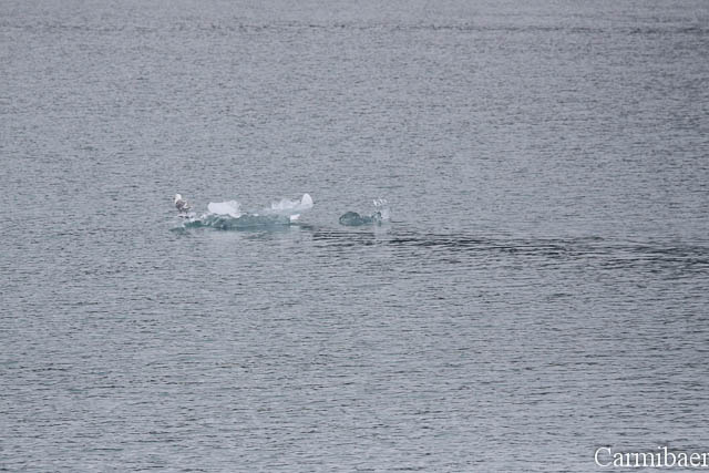 Bevor es weiter ging hat die Crew einen Eisbrocken aus dem Meer gefischt, der dann auf dem Boot die Runde gemacht hat. Carmen hat den Gletscher sozusagen auch mal angefasst.