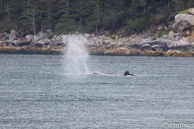 Zwischendurch war noch ein Buckelwal zu beobachten. Schön, wie die Flosse so aus dem Wasser gewunken hat. Aber wie ihr sehen könnt ist das Wetter echt nicht schön, aber für die Tiere einfach toll. Carmen jedenfalls hat es so viel besser gefallen, als wenn strahlender Sonnenschein gewesen wäre und keine Tiere.