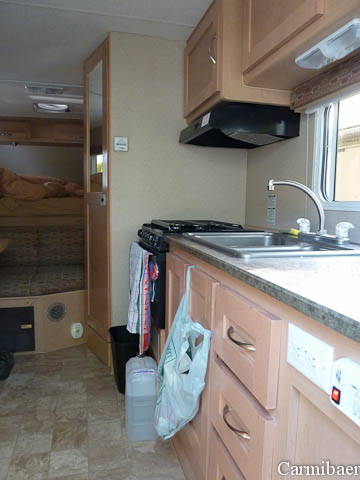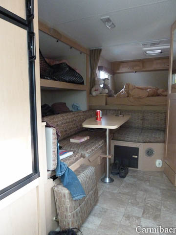 Links seht ihr die zwei Bunk-Beds, die sogenannten Kinderbetten. Dies ist der Slide-Out. Somit musste die Sitzecke jedes Mal wieder abgebaut werden, wenn wir fahren wollten. Irgendwann war das schon ein wenig nervig. Beim nächsten Mal werden wir sicherlich nicht nochmal so einen Truck-Camper mieten, aber es war die einzige Möglichkeit dieses Jahr zu dieser Zeit noch in Alaska Urlaub zu machen.