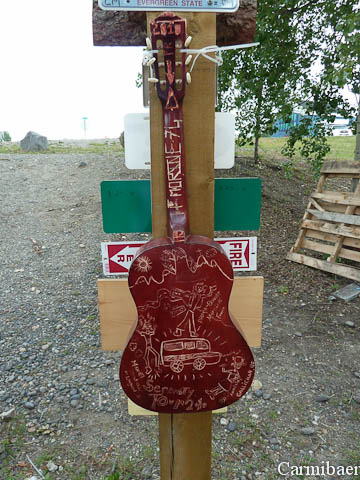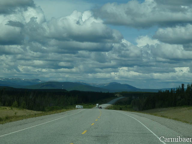 Aber bevor es soweit war haben wir kurz hinter Watson Lake erstmal einen Schreck bekommen, als es merkwürdige Geräusche gab. Wir dachten sofort an einen Platten. Sind rechts rangefahren und Knut und Carmen haben das Auto inspiziert. Sie konnten aber nichts feststellen. Auch die Reifen hatten alle noch Luft. So sind wir dann weitergefahren und haben gehofft in Whitehorse anzukommen.