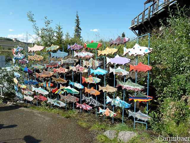 Gegen 16.00 h waren wir im Stadtzentrum von Whitehorse. Hier ist es echt heiss. Wir haben über 25 °C. Das sind wir gar nicht mehr gewohnt. Erst wurde für heute noch ein paar Würstchen und Eis eingekauft und dann sind wir zum Fischlader gefahren. Nur waren noch keine Lachse da. Sie sind erst kurz vor Dawson City. Es dauert wohl noch bis Anfang August, bis sie hier in Whitehorse ankommen. Da haben sie dann über 3000 km zurück gelegt.