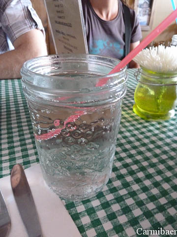 Kurze Zeit nach uns kamen Ingrid und Jörg auch an. Mit ihnen sind wir noch nach Whitehorse rein. Besser gesagt Carmen und Knut, wir beide haben auf die Taschen aufgepasst. Aber zum Laufen ist es doch recht weit. Unterwegs haben wir eine Bushaltestelle entdeckt und es kam auch gerade ein Bus. Für 2,50 $ konnten wir die Strecke bis in die Stadt nutzen. Auf dem Rückweg wussten wir auch schon, wo der Bus hält. Auch wenn die Damen bei Fraserway meinten, dass man in 15-20 min in die Stadt gelaufen ist. Ist man aber definitiv nicht. Heute ist es zum Glück nicht ganz so heiss, aber es hat uns schon gereicht. Die Sonne hat sich nur ab und an durch ein paar Wolkenlücken gekämpft. Die Empfehlung von den Frauen bei Fraserway bezüglich des Essens war aber gut. Die vier waren echt lecker essen. Der Wrap und die Burger mit Pommes waren sehr gut und das Restaurant sehr urig eingerichtet. Die Getränke gab es in einem Glas, das irgendwie an ein Einmachglas erinnerte.
