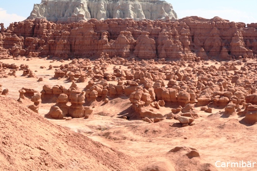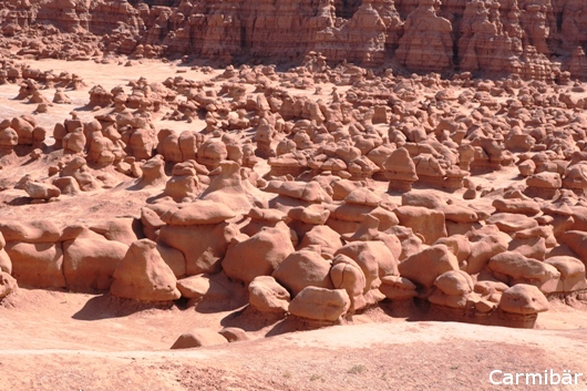 Wir sind über den Goblin Valley State Park gefahren. Es ist ein sehr kleiner aber schöner Park. Da es ein State Park ist, mussten wir Eintritt bezahlen, da er ja in unserm Annual Pass nicht enthalten ist. Es war schon recht lustig, da es nur so von Jugendlichen gewimmelt hat, die dort sauber gemacht haben. Keine Ahnung was es für Leute waren. Auch an dem Viewpoint, wo man zu den kleinen Zwergen runtersteigen konnte, waren ein paar Jugendliche mit Ihrem Aufpasser oder Erzieher zu Gange und haben dort die Picknickbänke neu angemalt. Es hat bei der Hitze ganz schön nach Farbe gestunken. Da es aber heute heiß war (zumindest für uns war es schon zu warm) und wir nicht wirklich in Wanderlaune waren sind wir dort durchgefahren und haben ein paar Bilder gemacht. Wenn es vielleicht nicht so nach Farbe gestunken hätte, wären wir doch noch ein paar Meter gelaufen, aber so sind wir lieber wieder ins Auto gestiegen und haben den Platz des Gestankes verlassen. ![]()