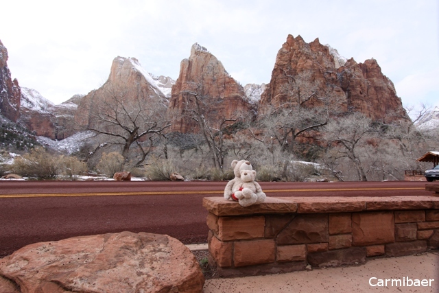 So gegen 13.30 sind wir dann im Zion angekommen und wir hatten eigentlich verhältnismäßig gutes Wetter, für dass das eigentlich Regen und Schnee vorhergesagt wurde, hatten wir Sonnenschein mit abwechselnden Wolken. Was will man mehr.