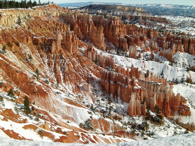 Die Landschaft unterwegs war echt schön anzusehen mit den gepuderten Bergen und den gepuderten Wiesen. Die Straßen waren glücklicherweise frei, denn soviel hatte es ja am Vortag dann doch nicht geschneit. Aber man merkte schon, dass am Straßenrand doch mehr Schnee lag, als auf der Hinfahrt zum Bryce Canyon. Leider gibt es von hier keine Bilder, denn Carmen ist gefahren und Knut hat keine Fotos gemacht.
