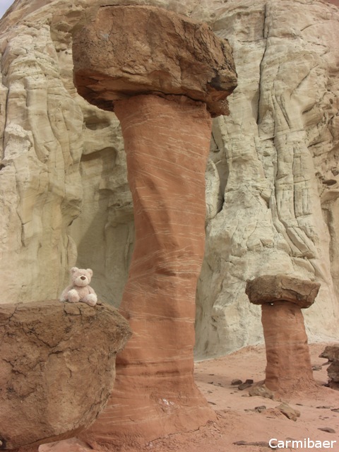 Auf halben Weg ist Knut dann eingefallen, dass er wohl seine Speicherkarten im Hotel hat liegen lassen. Dann haben wir den Rucksack erstmal durchwühlt und tatsächlich war keine der drei Karten im Rucksack. Aber zurück wollte Knut auch nicht mehr fahren, denn er dachte, dass es dann wegen dem Wetter überhaupt nicht mehr lohnt dorthin zu gehen. Glücklicherweise hat ja Carmen auch noch eine Kamera. Allerdings war da der Akku nicht mehr ganz taufrisch. Hoffentlich hält er wenigstens, damit noch ein paar Hodoos auf die Speicherkarten kommen. Ich wollte doch noch welche zu Gesicht bekommen.
