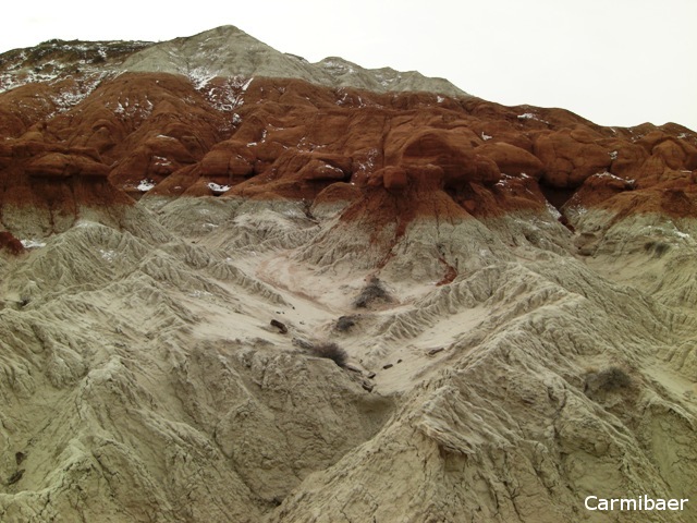 Hier kann man sogar noch ein paar Fitzelchen Schnee auf den roten Steinen entdecken. Carmen fand das faszinierend. Es waren wohl die Stellen, wo kaum Sonne hinkommt.