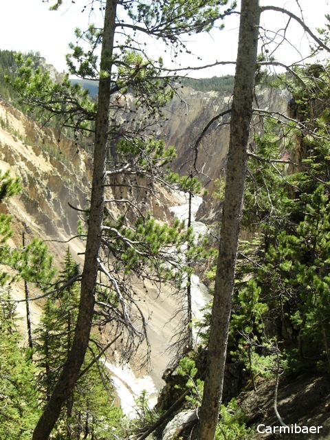 Als erstes sind wir zu den Lower Falls runtergelaufen. Der Weg runter ging ja ganz einfach, aber die 600 ft musste ich auch irgendwie wieder nach oben kommen. Na ja, vielleicht trägt mich die Carmen oder der Knut ja. Und das hat auch tatsächlich geklappt. Was haben die anderen Leute geschaut und wollten mich am liebsten knuddeln. Aber das hab ich dann nicht wirklich zugelassen, denn das darf ja nicht jeder.