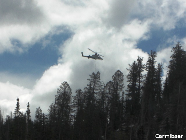 Hier noch ein paar Bilder von unterwegs, denn wir haben heute auch wieder einen Hubschrauber beobachtet, der ganze Baumstämme aus den Wäldern gezogen hat.