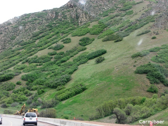 Als erstes wurde unser Autochen gefüttert und dann ging’s bei Sonnenschein und Wolken Richtung Green River. Carmen und ich haben erst noch mal ein Nickerchen gemacht, da wir beide nicht so gut geschlafen haben. Wissen auch gar nicht warum, denn die Betten waren doch so bequem. Unterwegs hat es immer mal wieder geregnet, aber da wir ja im Trockenen saßen war es eigentlich nicht ganz so schlimm.