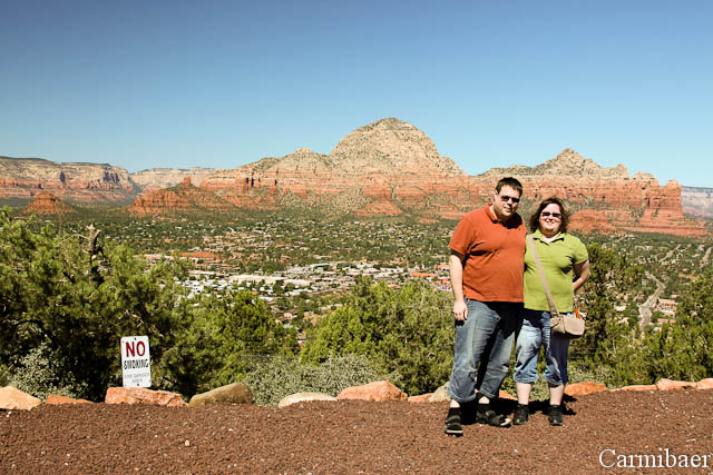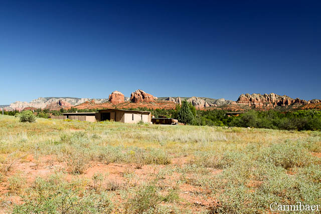 Auch wollte ich, den nicht so freundlich dreinschauenden Ranger, nicht nach einem gemeinsamen Bild fragen. Ich glaub, der hätt dazu bestimmt keinerlei Lust gehabt. Leider hat Carmen mein schönes Nationalparkpass-Buch vergessen, sodass wir uns die Stempel nur auf einem Stück Papier geholt haben, die dann später eingeklebt werden. Wir wollten morgen nicht nochmal wegen einem Stempel hierher fahren. Dann ging es weiter über die I 17 und dann auf die 179 Richtung Sedona. Am Red Rock Pass Visitor Center wurde der nächste Halt eingelegt. Die Gegend hier gefällt mir echt gut. So viele rote Steine. Herrlich der Ausblick von hier.