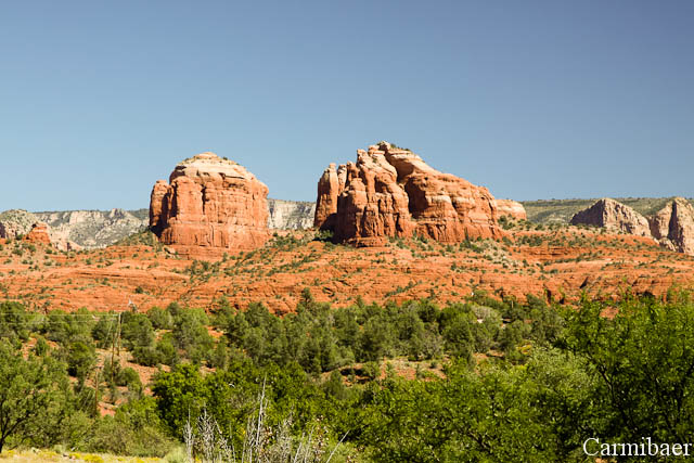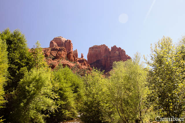 Weiter ging es, um uns den Cathedral Rock anzuschauen. Leider haben wir ihn nicht so schön vorgefunden, wie man ihn immer auf so vielen Bildern sieht. Schade, aber nicht zu ändern. Wir haben dort im nahe gelegenen Park gehalten und sind ein wenig durch die Gegend gelaufen in der Hoffnung, doch noch den richtigen Platz zu finden. Leider mussten wir fürs Parken auch Geld bezahlen und wurden nicht so richtig belohnt. Aber egal, es war ein schöner, wenn auch heißer Spaziergang, denn die Sonne hat nun unaufhörlich vom Himmel gebrannt. Wieder zurück am Auto haben wir erst mal eine kurze Rast eingelegt und ein bisschen was gegessen und getrunken.