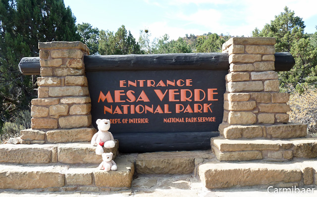 Am Parkeingang war ein super lieber Ranger. Er hätte mich gerne bei sich behalten, aber das wollte ich nicht. So sind wir dann bis zum Visitorcenter gefahren, haben uns einen Stempel abgeholt und ich habe mich mit Carmen brav in die Reihe angestellt, damit wir mit dem Ranger ein Bild machen konnten. Hier im Visitorcenter gibt es die Tickets für die Besichtigungstouren der Häuser zu kaufen. Aber das wollten wir nicht. Waren ja schon vor ein paar Jahren hier und das hat irgendwie gereicht.