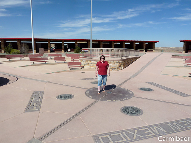 Da haben wir dann pro Person 3 $ bezahlt, damit wir uns mal in den Kreis stellen dürfen, wo alle vier Staaten zusammen laufen. Die Indianer lassen es sich eben teuer bezahlen, wenn man auf ihr Land möchte. Dort gibt es rundherum Verkaufsstände, aber die haben uns mal überhaupt nicht interessiert. Es waren auch nicht alle besetzt, aber ich denke, es ist auch nicht mehr Hochsaison.