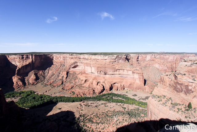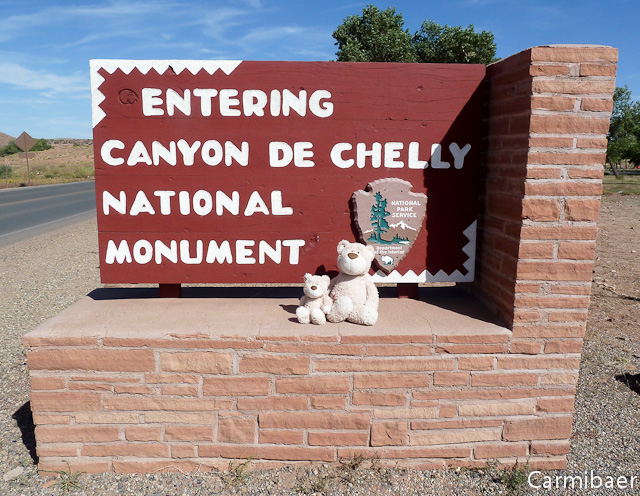 Gegen 15.30 h kommen wir in Chinle und am Eingangsschild des Canyon de Chelly an.