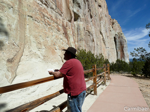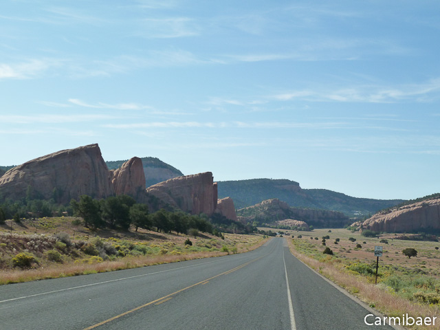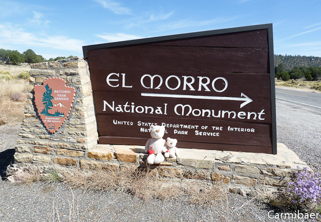 Die nächste Teilstrecke in Richtung El Morro N.M. war immer noch recht grün. Es sieht hier irgendwie nicht so karg und nach Wüste aus, wie ich es doch noch in Erinnerung habe. Auch ganz abwechslungsreich eigentlich. Aber zwischendurch hat Carmen mal wieder ein kurzes Nickerchen gemacht, denn sie konnte nachts nicht schlafen. Es war doch so warm im Zimmer. Bei El Morro angekommen gab es natürlich die obligatorischen Bilder.