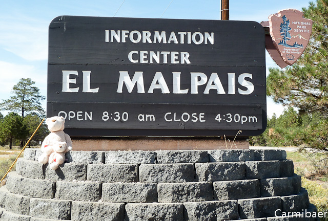Danach ging es weiter Richtung Grants. Beim El Malpais N.M. haben wir kurz angehalten, uns den Stempel abgeholt und ich natürlich wieder ein schönes Bild mit einer Rangerin. Diese hat doch gedacht, das Carmen Lehrerin ist, weil sie sowas öfter mit Stofftieren hat. Und das sind dann meistens Lehrer, die den Kindern anhand der Fotos mit Stofftieren etwas besser veranschaulichen wollen. Also wirklich. Carmen sieht doch nicht wie eine Lehrerin aus und ich schon gar nicht wie ein Bärchen, dass sich von vielen Kindern andauernd betatschen lässt. ![]()