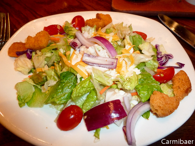 Nach kurzem Auspacken und noch ein wenig was essen und trinken, denn es gab heute erst ein Sandwich (sprich zwei Scheiben Toast mit Schinken und Cream Cheese belegt), geht es dann zum Abendessen ins Outback Steakhouse. Dort gibt es erst eine Blooming Onion und für jeden noch ein Steak mit baked Potatoes.