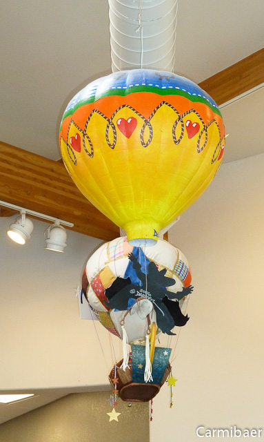 Um 9.30 h sind wir dann losgefahren. Erst ging es zum Giftshop des Balloonfestival Geländes. Denn dort kann man vorab schon Karten erwerben. Es war auch schon mächtig viel los. Jetzt hoffen wir nur, dass wir morgen auch einen Parkplatz bekommen. Ilka meinte, dass dies letztes Jahr kein Problem war. Das hoffe ich dann mal für dieses Jahr auch. Im Giftshop haben wir uns ein Weilchen umgesehen und Carmen musste gleich mal Bilder von den kleinen Ballons machen, die von der Decke hängen.