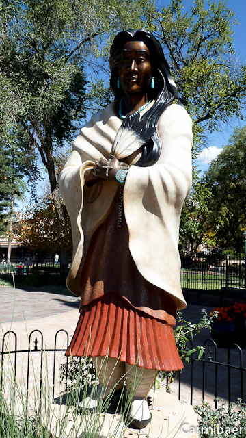 Aussen steht auch die Indianerin. Die sieht man ja immer auf Bildern, wenn man Santa Fe sieht. Also haben wir sie auch abgelichtet. Sowas darf doch irgendwie nicht fehlen.