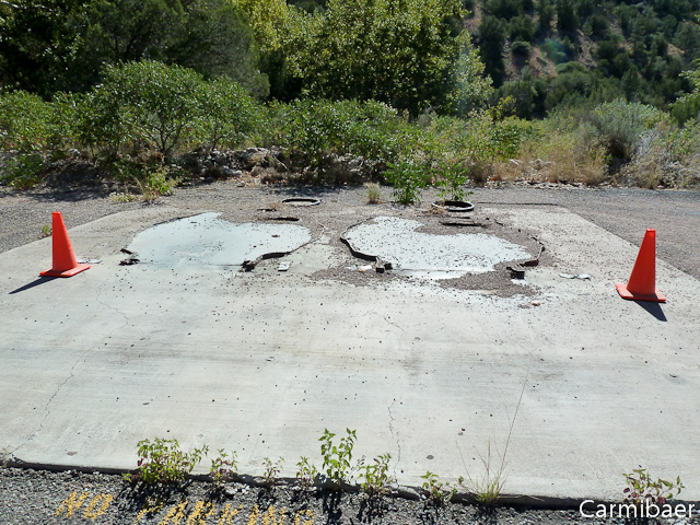 Nach einer knappen halben Stunde geht es also weiter. Ein wenig enttäuscht sind wir, aber wir können es ja nicht ändern. Die Fahrt geht nach Mogollon, einer Ghost Town keine 10 Meilen vom Catwalk entfernt. Überall liegen auch hier noch Sandsäcke rum. Ich hab so das Gefühl, dass es erst kürzlich richtig geregnet hat. Na ja wir können es ja nicht ändern. Heute scheint zumindest schön die Sonne. Die Landschaft sieht echt schön aus.