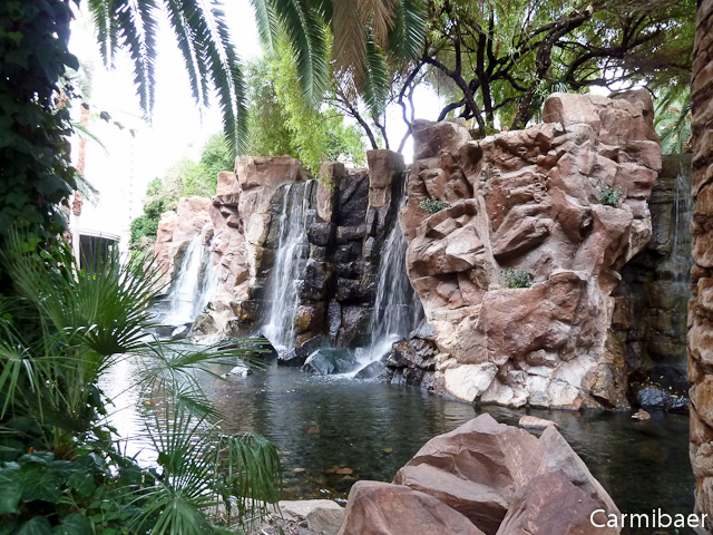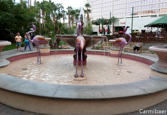Danach ging es erstmal ins Hotel zurück. Dort wurde sich kurz abgekühlt und überlegt, wie der weitere Tag abläuft. Carmen hat sich gleich mal umgezogen, denn sie hat sich gedacht, dass sie vorm Abendessen sicherlich nicht nochmals ins Zimmer kommt. Als erstes geht es zur Fashion Show Mall, einen Stempel für meinen Pass abholen. Denn gestern haben sie den Pass vergessen, aber ich wollte doch unbedingt noch einen Stempel aus Las Vegas haben und das dann auch gleich am Geburtstag von Carmen. Damit ich immer eine schöne Erinnerung an den Tag habe. Bevor es allerdings dorthin ging, sind sie durch den Garten vom Flamingo geschlendert und haben noch ein paar Bilder gemacht.