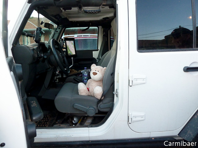 Auf dem Parkplatz wurde dann auch noch mind. eine Stunde oder länger gequatscht bevor wir um 23 h in unsere Zimmer verschwunden sind. Ok, ich geb es zu, ich durfte weder mit zum Essen noch war ich mit draussen. Obwohl, vorm Essen durfte ich bei Christian im Rubicon mal Platz nehmen. Das Teil ist schon was tolles, hauptsächlich weil es auch so große Räder hat.