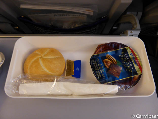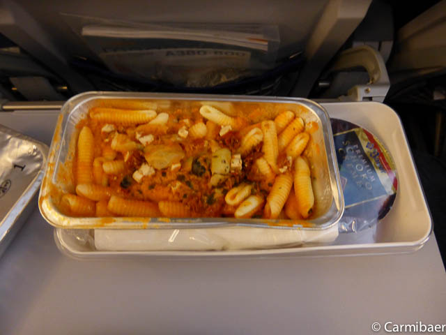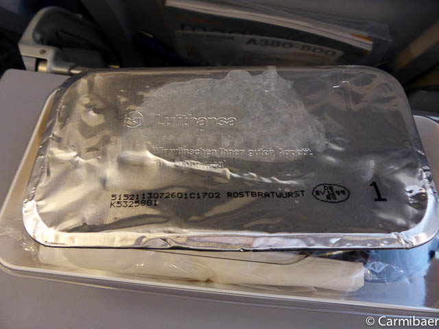 Später wurde noch eine Schoki gereicht und zum zweiten Essen gab es Pasta oder Bratwurst mit Sauerkraut. Echt eine gewagte Kombination. Es hat aber beides geschmeckt.