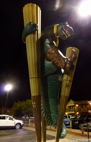 Um 9.20 h sind wir abfahrbereit. Erst geht es noch einmal kurz nach Downtown. Die Buddy Holly Statue will abgelichtet werden. Wir bleiben aber im Auto, denn der Rasen davor wird gerade gewässert und durch den Wind ist das alles doch recht feucht. Eigentlich dachte ich ja, dass Carmen und Knut heute morgen schon genügend Wasser unter der Dusche abbekommen haben, aber irgendwie kommen sie ein wenig feucht wieder zurück zum Auto.