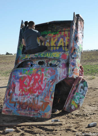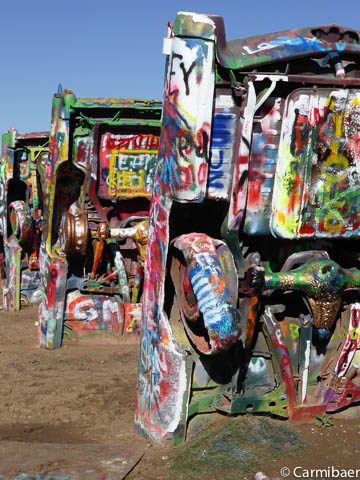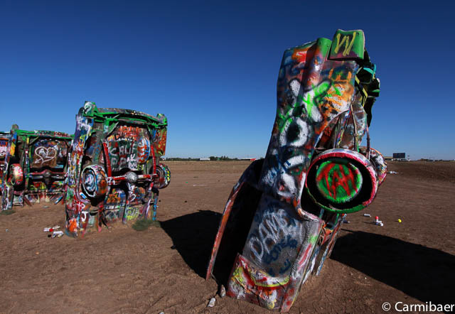 Als erstes geht es ein Stückchen Richtung Westen. Denn wir wollen zur Cadillac Ranch. Mal sehen wie die bunten Autos so aussehen. Als wir angekommen sind, haben wir Bären uns entschieden lieber im Auto zu bleiben, denn es ist ganz schön windig und die Erde wird nur so aufgewirbelt. Ich möchte ja nicht, dass ich zu schmutzig werde. Wie sieht das denn sonst auf den weiteren Bildern aus. Sowas geht ja gar nicht. ![]()