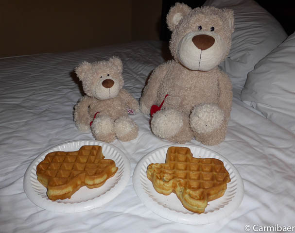 Um 7.30 h hat uns der Wecker mal wieder geweckt. Na ja eigentlich schon nachts um 0.00 h der Radiowecker. Irgendwie haben wir das wohl übersehen, dass der angeschaltet war, somit waren wir mal kurzfristig wach, aber dann konnten wir prima weiter schlafen. Heute haben wir uns gleich fertig gemacht und sind zum Frühstücken runter. Und was soll ich sagen, die beiden haben uns sogar eine Waffel mitgebracht.