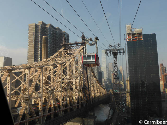Drüben angekommen gehen wir kurz zum Wasser, lassen eine Seilbahn zurückfahren und fahren dann mit der nächsten wieder nach Manhattan zurück. Es hat nicht wirklich lange gedauert, denn die zweite Gondel war auch wieder im Einsatz. Aber bei dem Wetter hätten wir auch noch etwas länger gewartet.