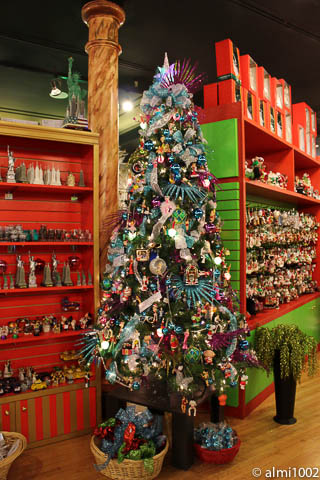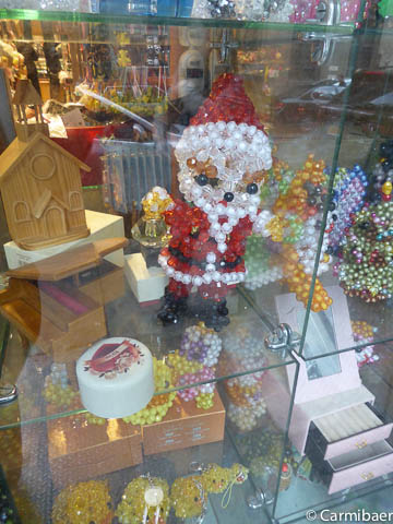Carmen hat von dem süssen Zeugs nichts haben wollen. Sie hat nur eine Cola getrunken. Und die war auch nicht gut, da es eine Light oder eine war, wo der Sirup nicht richtig geflossen ist. Irgendwann nachdem es ihr schlecht war hat sie sie reklamiert und eine neue bekommen. Da es dort Internet gibt, hat sie kurz Mails gecheckt und mit Knut geschrieben. Ins Forum ist sie aus unerfindlichen Gründen nicht gekommen. Na ja auch nicht so schlimm, wir wollen schließlich weiter. Uns hat es eine zeitlang durch die kleine Straße von Little Italy getrieben und besonders hat es uns ein Christmas Shop angetan und dort wurde Carmen auch fündig. So einige Dinge für zu Hause ist in ihren Besitz übergegangen. Nicht nur für den Weihnachtsbaum, auch als Deko zum hinstellen ist was dabei. Und sogar etwas mit Bärchen.