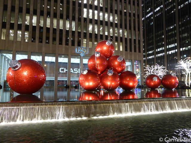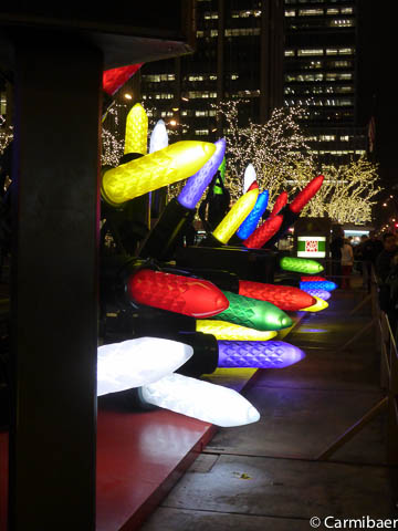 Carmen hat sich noch ein Eis geholt, was wir uns auf dem Zimmer geteilt haben. Unsere Pause war nicht wirklich lang, denn gegen 18.00 h sind wir wieder aufgebrochen. Als erstes geht es mit der U-Bahn zum Rockefeller Center. Die Mädels wollen den Baum nochmal sehen. Aber vorher werden noch die bunten Lichter abelichtet.