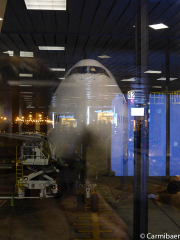 Um 17.15 h waren wir am Abfluggate B 62 und unser Flieger ist auch schon da.