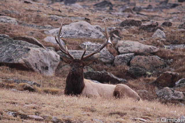 Kurz nach dem Alpine Visitorcenter, wo es so arschkalt war und die Sicht gleich null lag am linken Strassenrand ein Elkbulle. Zwischenzeitlich war die Sicht wieder besser und auch die Sonne hat wieder rausgeblitzt. Da haben wir gleich die Chance genutzt ein paar Bilder zu machen.