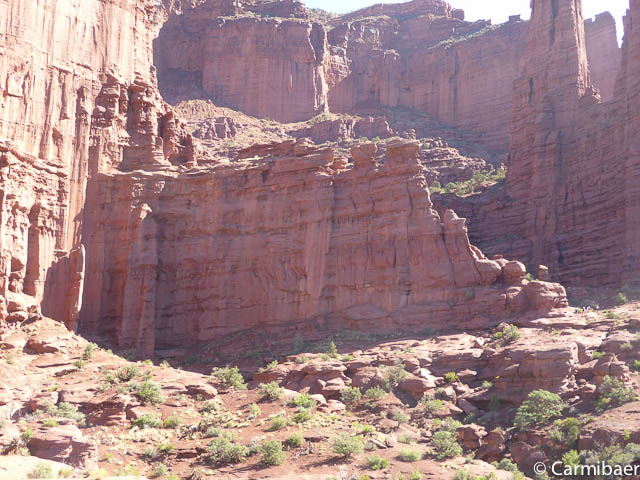 Nach einer guten ¾ Stunde sind die beiden an den Fishertowers bzw an dem kleinen Plateau, von wo man sie gut sehen kann, angekommen.