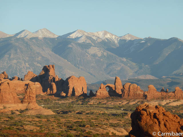 Am Eingang vom Arches haben wir aber noch das obligatorische Bild gemacht, wozu wir gestern Abend auf dem Rückweg keine Lust hatten. Denn da war Schlange stehen angesagt. ![]()