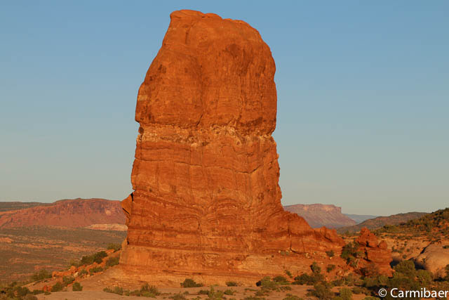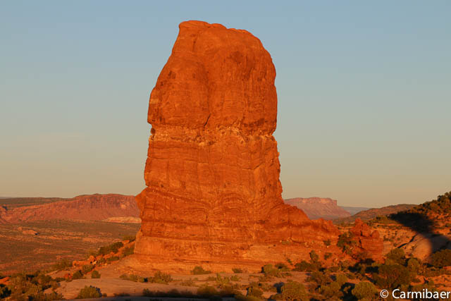 Gegen 18 h sind wir in den Arches N.P. zum Sonnenuntergang aufgebrochen. Wir haben uns den Balanced Rock ausgesucht und sind kurz vorm Parkplatz links auf die Dirtroad abgebogen, damit wir von dem kleinen Hügel gegenüber ein paar nette Bilder machen können.