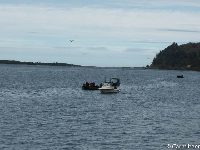 Um 8.25 h geht es bei 14 Grad endlich los. Am Cape Kiwanda haben wir den Surfern zugeschaut und einen ersten Muffin gegessen. Wir können bis in die erste Reihe vorfahren. Es gibt sogar noch jemanden, der sich zwischen uns drängt, da können weder wir noch derjenige aussteigen. Gut, dass das Auto sehr schnell wieder gefahren ist, so konnten wir noch ein paar Bilder machen.