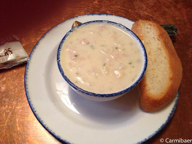 Gegen 18.30 h sind die beiden dann zum Essen in kleiner Stadt aufgebrochen. Sie sind gelaufen, denn das Motel ist fussläufig zu vielen Restaurants.. Wir sind zu Norma’s Seafood and Steak essen gegangen. Da es heute Freitag ist, müssen wir auf einen freien Tisch gute 20 Minuten warten. Aber es ist überall ziemlich voll. Für Knut gibt es ein Steak und Carmen hat Fisch gegessen. Das Essen ist sehr gut.