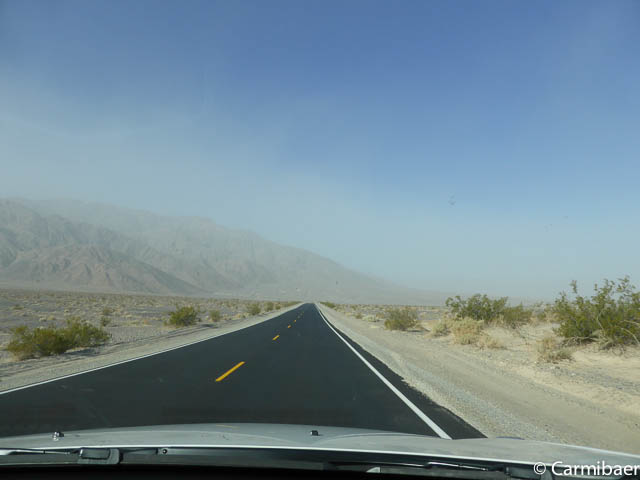 Mittlerweile ist es 7:35 Uhr und wir haben 67 °F. Wir fahren jetzt durchs Death Valley.