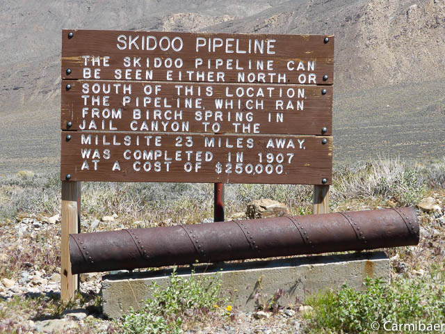In Skidoo selber sieht man außer einem Schild gar nichts. Irgendwie hat Carmen da etwas anderes in Erinnerung. Sie sind noch ein Stückchen weiter gefahren, aber auch da ist nichts außer ein Schild das die Straße geschlossen ist.