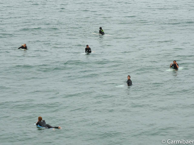 Uns gefällt es hier richtig gut. Auf dem Pier schauen wir den Surfern zu.